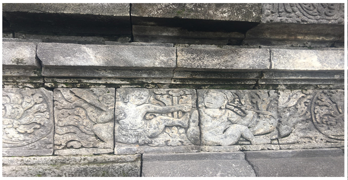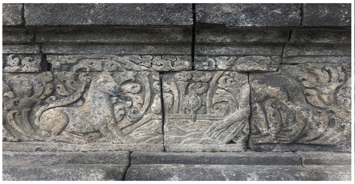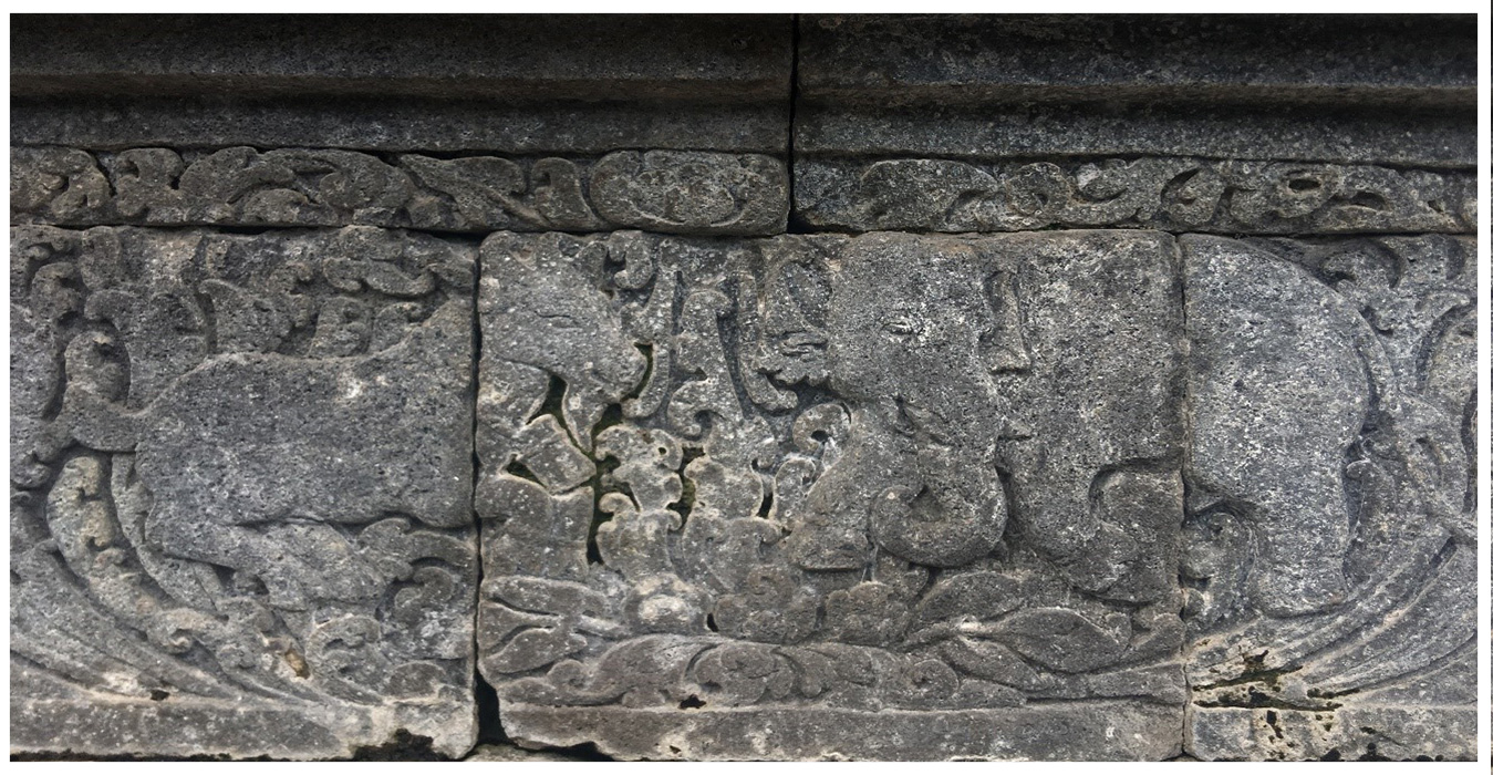 Relief ini menceritakan persahabatan antara seekor kambing dan seekor gajah.