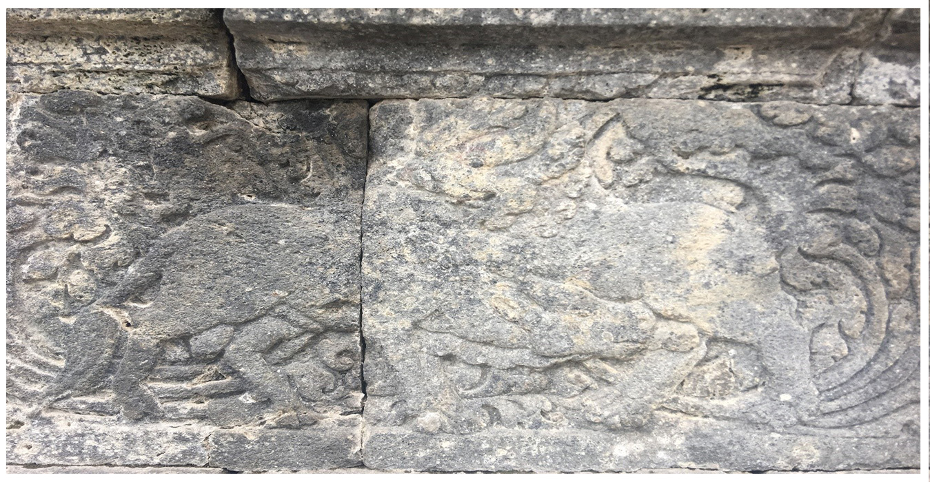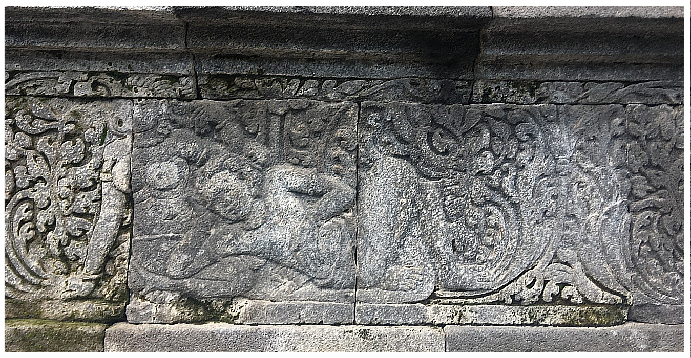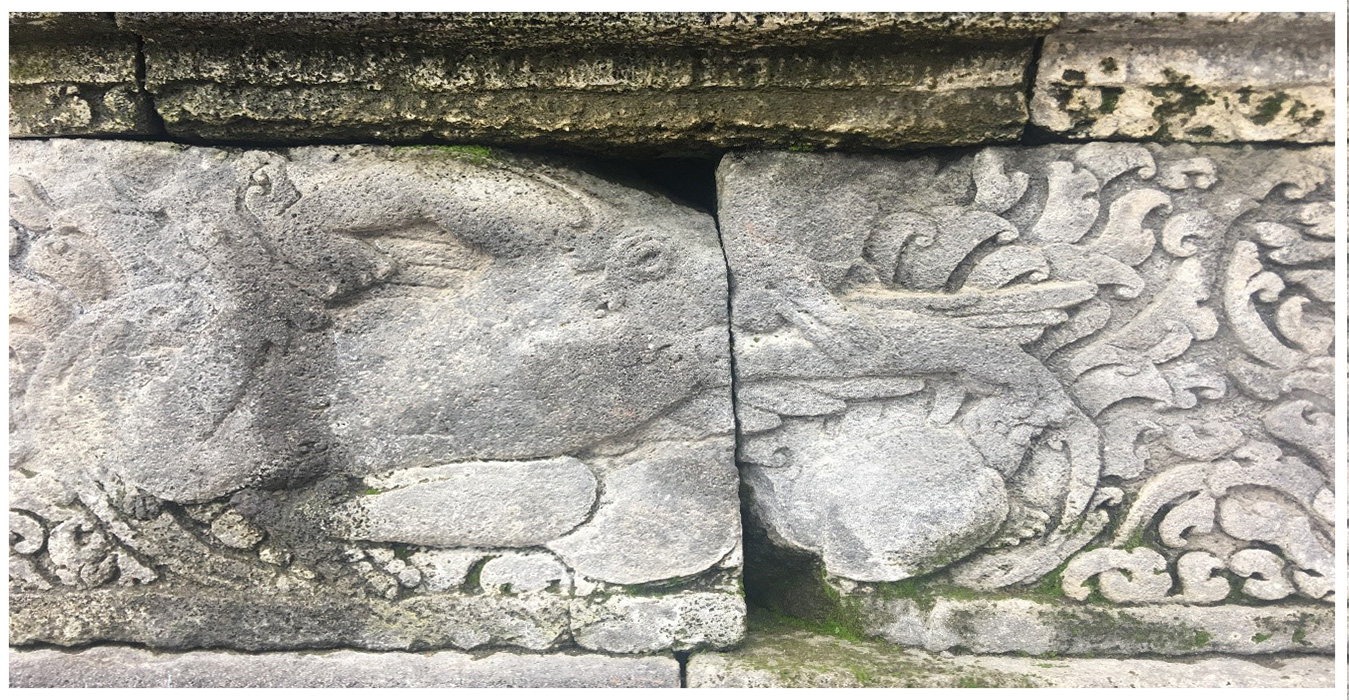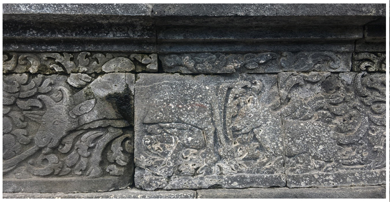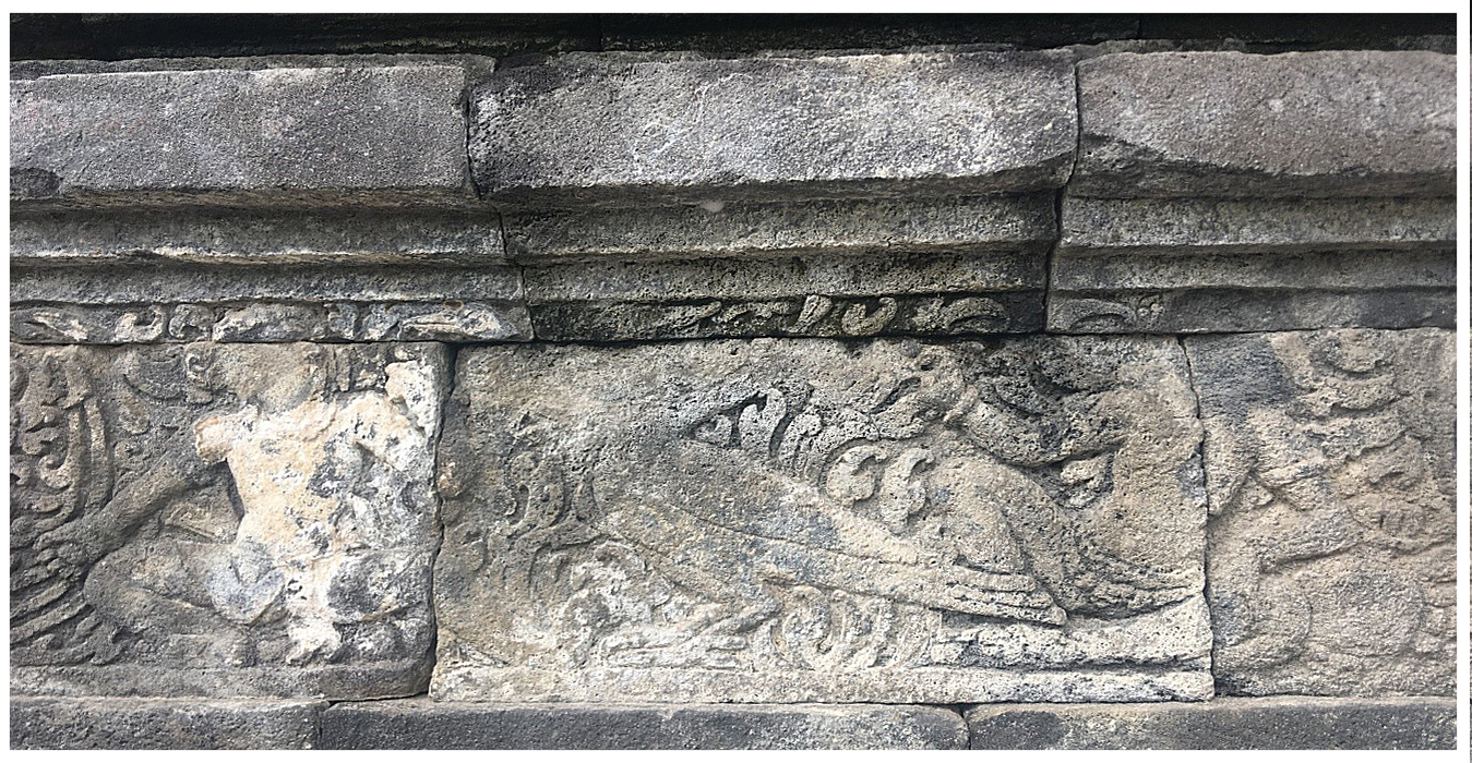 Relief ini menceritakan kisah seekor burung berkepala dua bernama Bharanda.